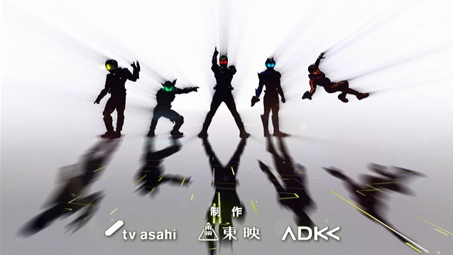 ใบปิดแรกไรเดอร์หน้าแหลมๆมีสองตัวคือโฮโรบิใช้คีแมงป่อง​สีม่วง กับ​ จิน(บักคลุมโม่ง)​ใช้คีฟอลคอนสีออกชมพู​ สองคนจากจันไร.เน็ตแปลงร่างเป็นไรเดอร์คนที่4-5​