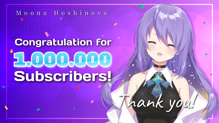 ยินดีด้วยกับมูน่า โฮชิโนว่าที่ได้ล้านซับเป็นคนแรกของโฮโลไลฟ์อินโดนีเซีย
