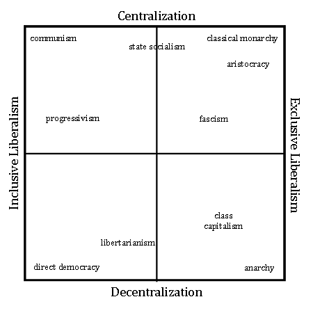ตามภาพครับ อนาธิปไตย(Anarchy) คือ ขวา-ล่างแบบสุดโต่ง ไปขวากว่าทุนนิยมเสียอีก